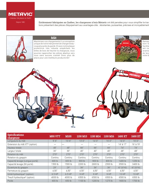 -Pour usage nécessitant un gros volume de bois à charger ou à transporter